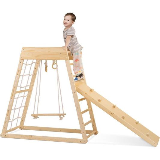 Wooden Play Gym with Slide, Monkey Bars, and Swing